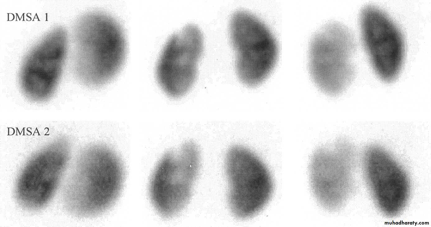 DMSA scan to detect and monitor associated renal cortical scarring.