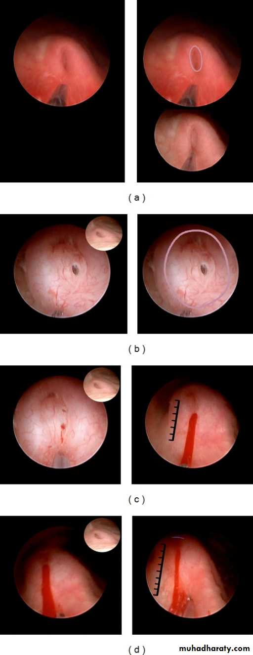 Cystoscopy: to study position and morphology of ureteric orifices and exclude secondary causes.