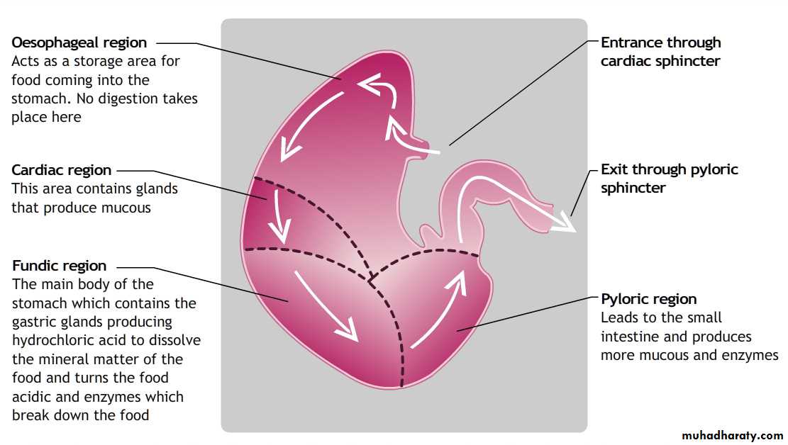 The stomach has four distinct regions: