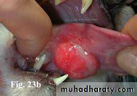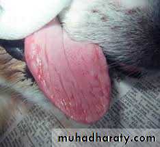 occurs due to car accidents, protruding objects or attacks by dogs. Because of the excellent blood supply healing is usually rapid. In severe laceration or loss of tissue plastic surgery is needed to preserve the normal function of lips and checks.Affections of the Tongue