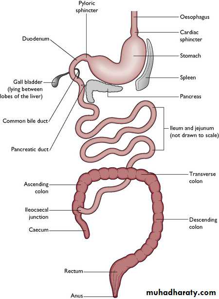 Oesophagus -- This tube is about 1.5 metres in length. It is a passageway from the mouth to the stomach and no digestion occurs hereCardiac sphincter-- is a strong band of muscle called a sphincter muscle. This acts as a one way valve into the stomach