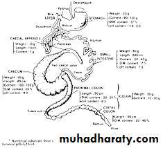 Small colon-- The small colon is roughly 4 meters in length and has a capacity of 16 litres