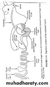 The stomach is relatively small, about the size of a rugby ball and can expand to hold roughly 9-18 litres. The horse is a trickle feeder and the stomach is constantly being topped up. Over feeding the horse can result in food being forced into the small intestine before it has been broken down properly by the gastric juices, with a risk of colic or other digestive upset. As the horse eats little and often the stomach is never empty.