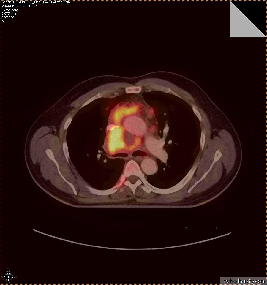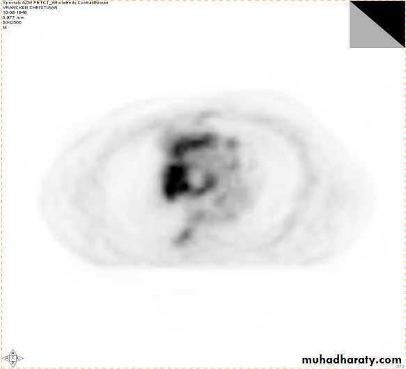 4-PET CT SCAN: its main indication in diagnosis of tumor recurrence after treatment, by demonstrating of increased metabolic level in abnormal tissue. majority of malignant tumors show a greater uptake of the radioactive tracer.
