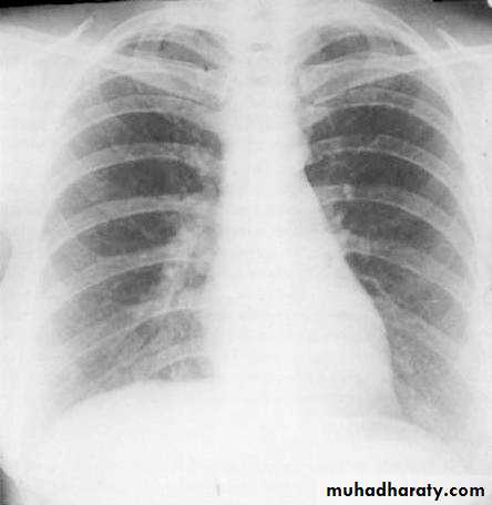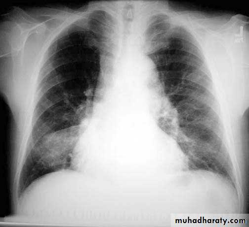 In expiratory film there is cardiac shadow enlargement , & vascular crowdening