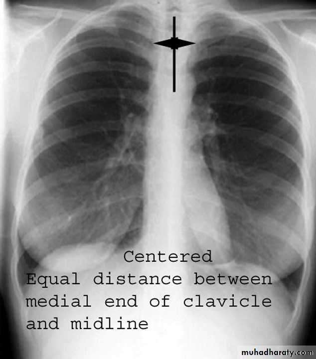 Rotation of the radiograph is assessed by judging the position of the clavicle heads and the thoracic spinous process.7) Good technique (amount of radiation )