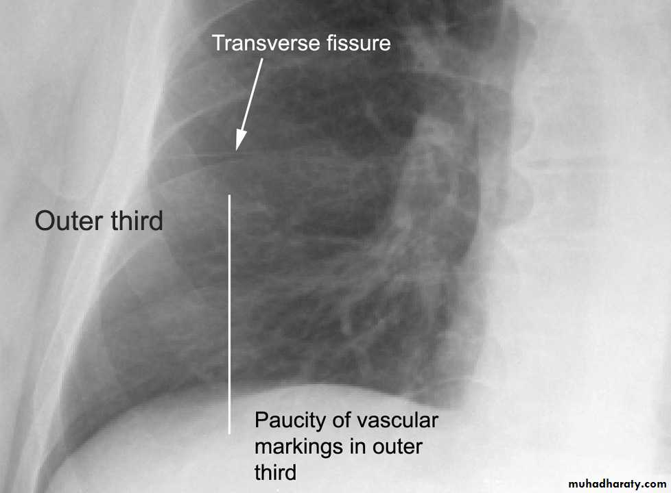 Loss of vascular markings at the outer parts of lung fieldsDemarcating pleural line between the lung & vessels lacking area.