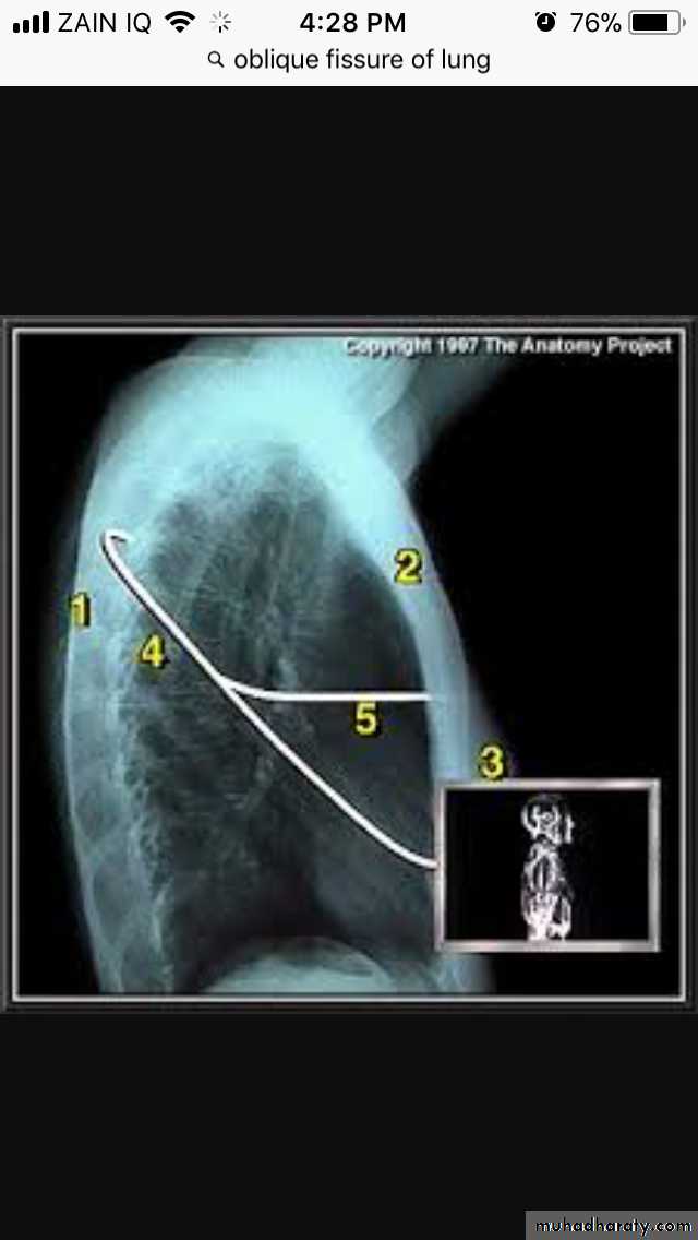 fluid within the horizontal or oblique fissures