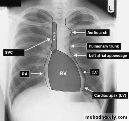 The vertebral bodies are just visible through the cardiac shadow