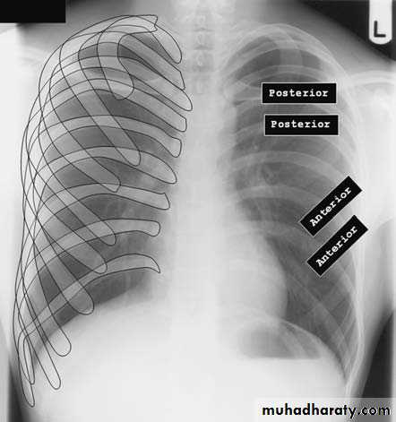 anterior ends of ribs & clavicles directed upwardPA VERSUS AP PROJECTION: