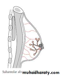 VenousIt tends to follow the arterial supply; axillary, internal mammary, and intercostal veins.
