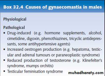40% of aging men have this to some degree.Drugs, such as steroids, digitalis, hormones, spironolactone, and antidepressants can cause this.