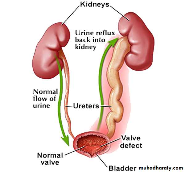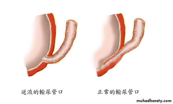 The distal ureter passes through the bladder wall creating anti-reflux valve.Reflux may cause renal scarring.