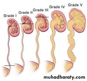 VUR is classified into 5 grades depending on the severity of reflux and the associated dilatation of the renal system.