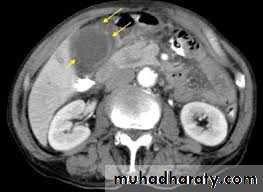 • Pseudocyst could be thick or thin walled cysts of variable sizes.
