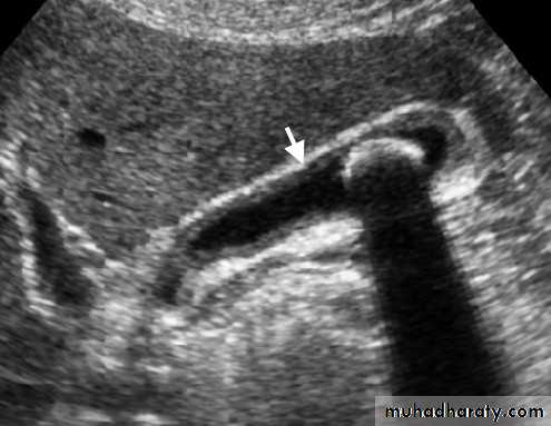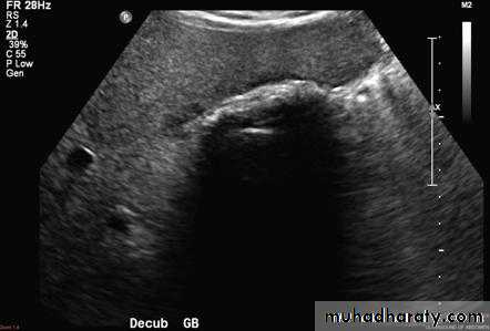 • On US, stones are strongly echogenic with acoustic shadow (which is not seen with polyps).