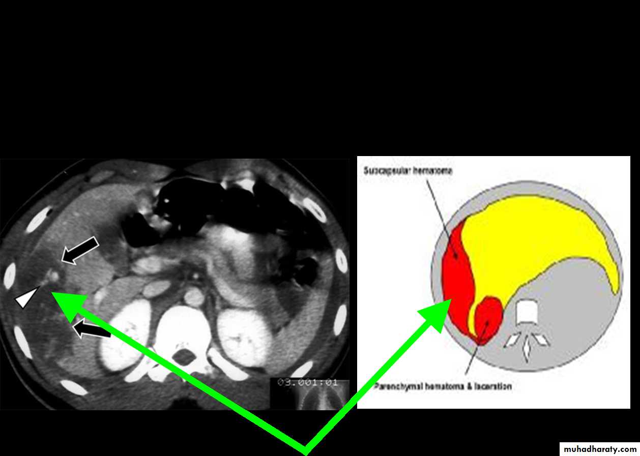Classification(AASTI-Subcapsular hematoma<1cm, superficial laceration<1cm deep.