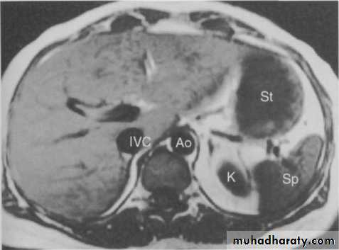 Magnetic resonance imaging is used as a problem-solving technique to give additional information to ultrasound and CT. Axial sections give images akin to CT but images can also be obtained in the coronal and sagittal planes. By using special sequences information can also be obtained on the arterial and venous circulation of the liver.Radionuclide liver imaging
