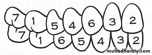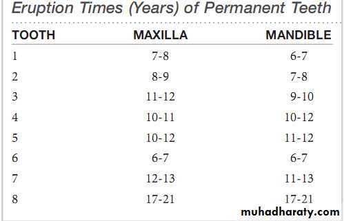 the maxillary permanent teeth is 6, 1,2, 4, 5, 3, and 7.