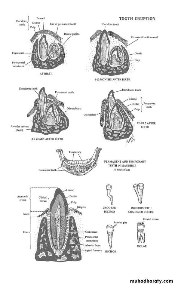 Each tooth starts to move toward occlusion at approximately the time of crown calcification completion.“Q. How much the interval from crown completion until the tooth is in full occlusion ?