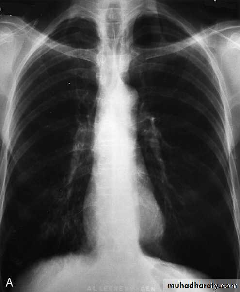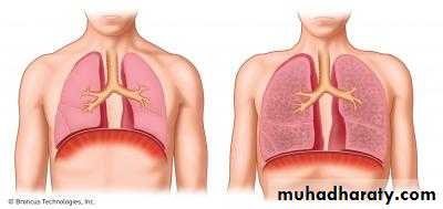 The hyperinflation causes flattening of the diaphragm, horizontal alignment of the intercostals muscles, markedly increasing the work of breathing.The patient ultimately develops respiratory failure, pulmonary vascular remodeling, pulmonary hypertension and cor-pulmonle.