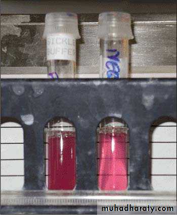 6.Sickle solubility tests depend on the decreased solubility of deoxygenated hemoglobin S . It is positive in patients with both sickle trait and sickle cell anemia and therefore cannot be used to distinguish homozygous from heterozygous hemoglobin S.
