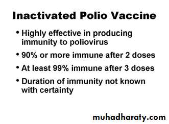 Type specific immunity of life longRate of paralysis among infected non immune adults higher than those in infants & young children.