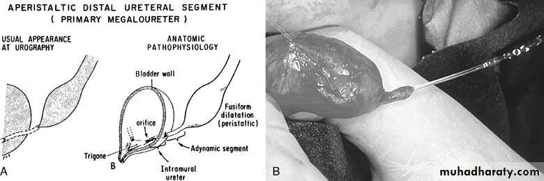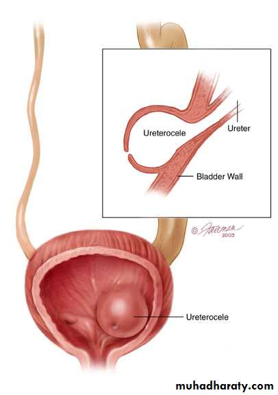 Is due to congenital atresia of the ureteric orifice which causes a cystic dilatation of the intramural portion of the ureter
