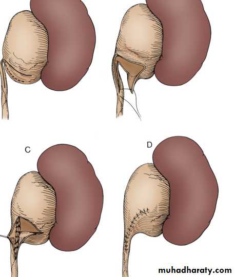 SURGICAL REPAIR including open surgical techniques, laparoscopic, & endoscopic approachesOpen & laparoscopic surgical techniques Anderson-Hynes dismembered pyeloplasty: excision of the pathologic UPJ & appropriate reanastamosis or flap technique or flap operation
