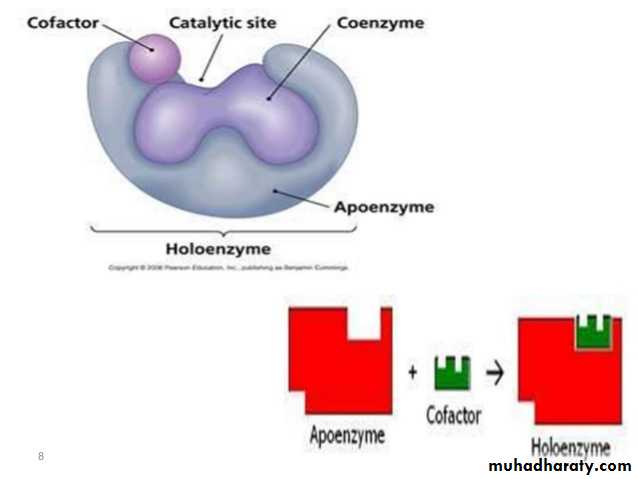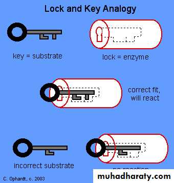All enzymes are protein in nature except ribozymes (RNA in nature) that cause reactions to happen in the body without raising the temperature. They are considered organic catalysts. Since they are proteins, their are made of chains of amino acids which in turn are controlled by sequences of DNA called genes located on chromosomes. Each enzyme is specific for one reaction. Note: Ribozymes (ribonucleic acid enzymes): are RNA molecules that are capable of catalyzing specific biochemical reactions, similar to the action of protein enzymes.Enzymes are biocatalysts• Catalysts are substances which accelerate the rate of chemical reactions, but do not change the equilibrium.• Lack of enzymes will lead to block in metabolic pathways causing inborn errors of metabolism.• The substance upon which an enzyme acts, is called the substrate.• The enzyme will convert the substrate into the product or products.