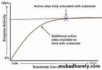 is defined as the substrate concentration (expressed in moles / lit) to produce half - maximum velocity in an enzyme catalyzed reaction. It indicates that half of the enzyme molecules (i.e. 50%) are bound with the substrate molecules when the substrate concentration equals the Km value. Km value is a constant and a characteristic feature of a given enzyme. It is a representative for measuring the strength of ES complex. A low Km value indicates a strong affinity between enzyme and substrate, whereas a high Km value reflects a weak affinity between them.Michaelis – Menten kinetics: