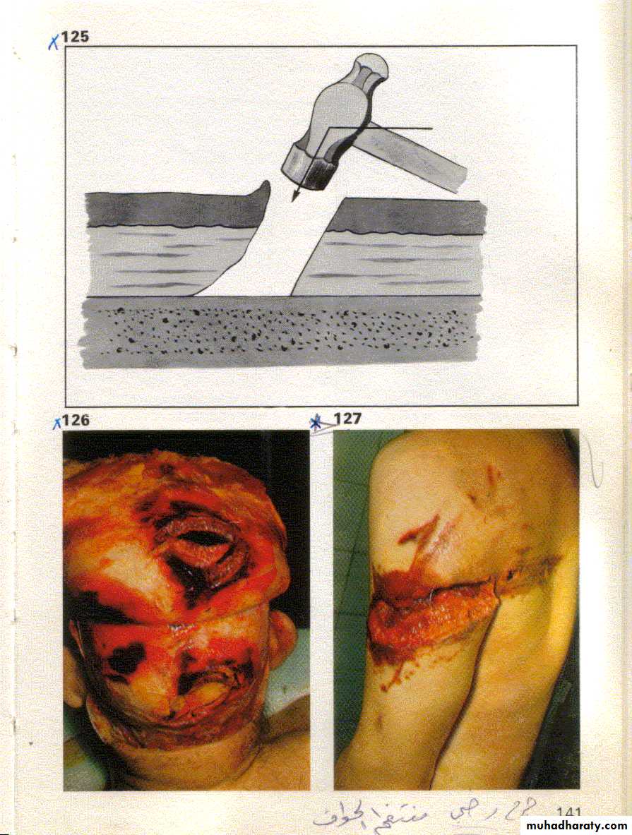 1- الجروح الحادة. (Incised wounds )وتتضمن مايلي : أ- الجروح القطعية ( Cut wounds )