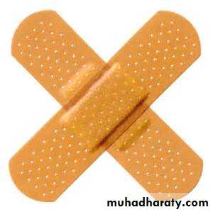 Solid adhesive preparation applied to skin to protect , sooth and lesser pain , and divided to 2 types :1- with medicament