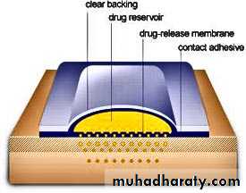 The release of the active component from a transdermal delivery systems can be controlled by diffusion through the adhesive which covers the whole patch by diffusion through a membrane