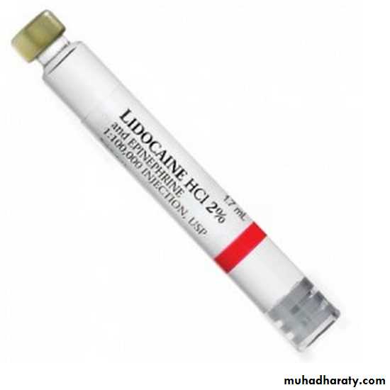 The duration of pulpal and hard tissue anesthesia with 2% lidocaine only lasts for 10 min , the addition of adrenaline of 1:50 000 or 1:100 000 dilution prolong the duration to 60 min.