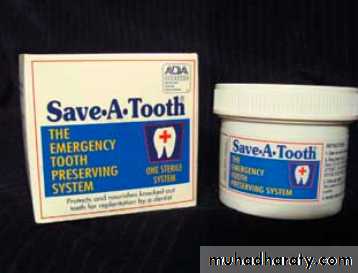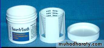 teeth that are protected in physiologically ideal media can be re -implanted within 15min to one hour after accident with good prognosis.HBSS (Hank’s balanced salt solution),