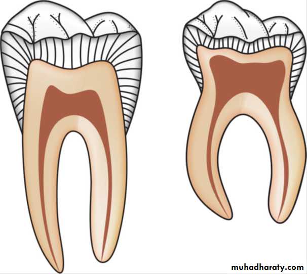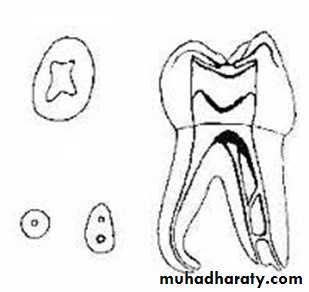 It usually resembles the external root shape.Mesiofacial root normally contains two distinct canals (85 to 90%).