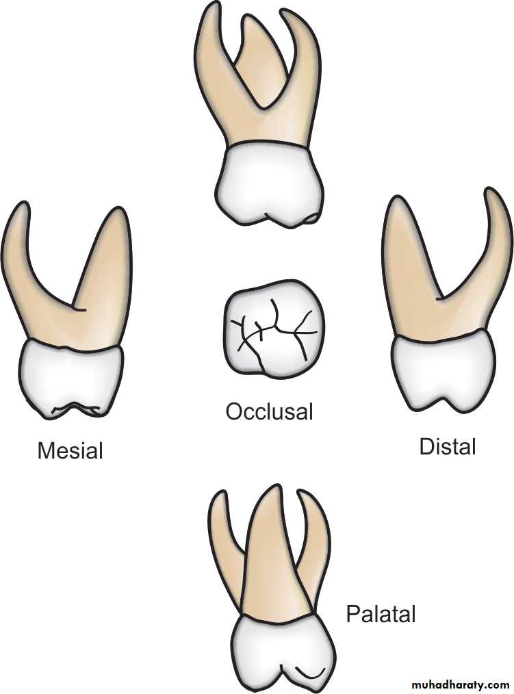 The root is long and slender and is about twice the crown length.Maxillary First Molars