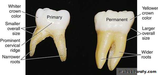 • The numbers and shape of the root of the primary teeth• Differences in morphology between primary and permanent teeth