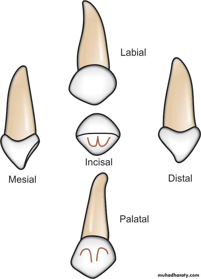 by the distoincisal angle, which is more rounded.