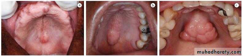 Nodular center,red inflamedSOFT PALATE