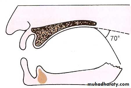 45 degree angle to the hard palate