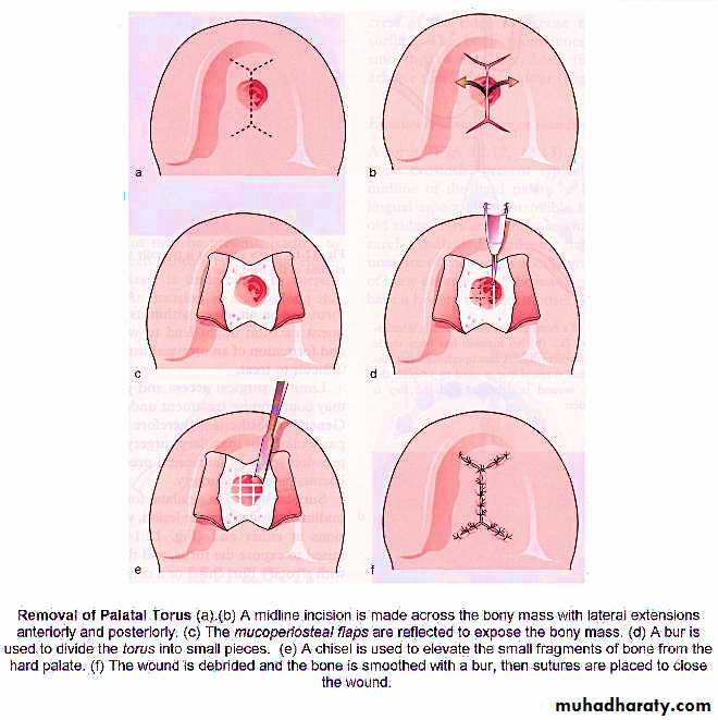 Mandibular torus:Interfere full or partially with denture
