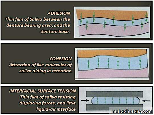 It is the attraction between the denture and saliva and between saliva and oral mucosa.Cohesion: