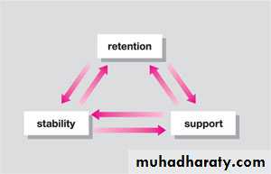 retention: the denture resist dislodging force pulling the denture away from basal seat in a vertical direction.The stability: denture resist forces acting in a horizontal or lateral direction