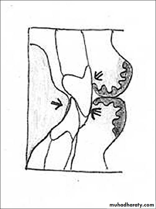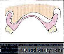 Coronoid process:Dist bucca;l portion of upper denture….dislodge when mouth opened