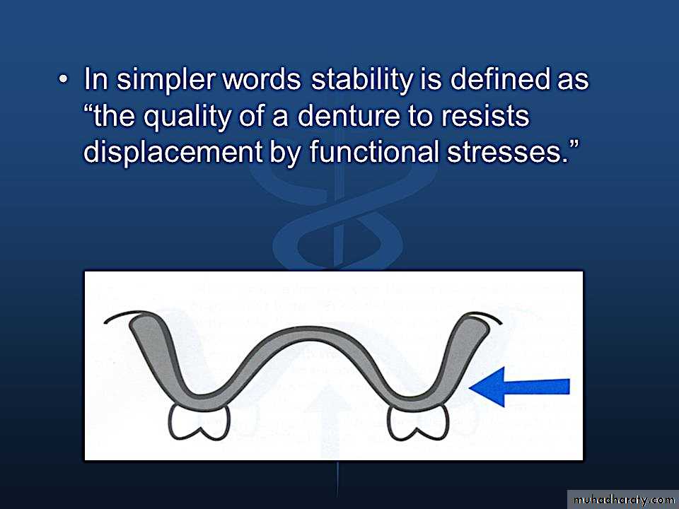 Many of the factors affecting retention would affect stability the main difference between retention and stability ………………is the direction in which the dislodging forces act.