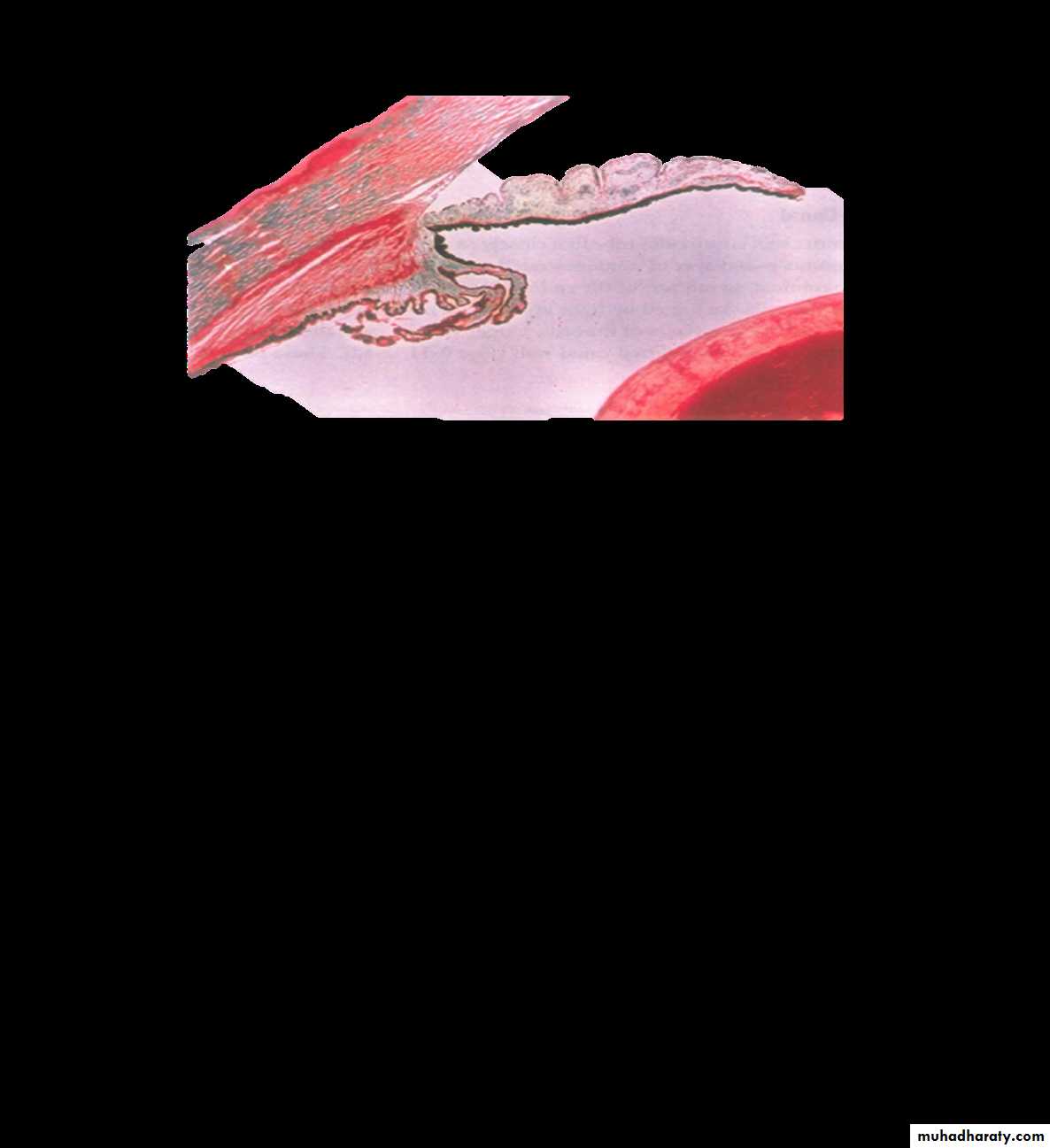 b- Iridocyclitis: in which both the iris and anterior part of the ciliary body (pars plicata) are equally involved.