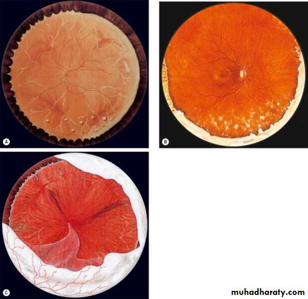 4- Cyclitic membrane formation which leads to traction and then detachment of the Ciliary body which causing phthisis bulbi.