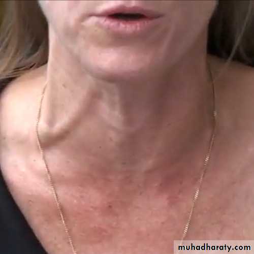 • Distended neck veins.• Cyanosis